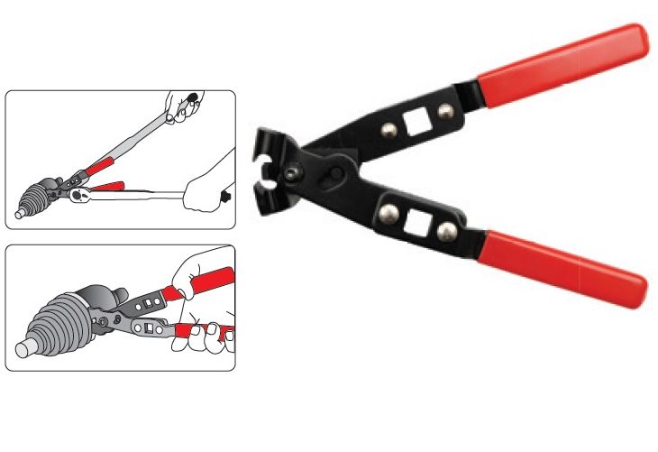 Kliešte na demontáž hadicových spôn. Možno použiť aj pre olejové alebo palivové potrubia. Špeciálna konštrukcia klieští umožňuje použitie 1/2" gombíka na zvýšenie upínacej sily alebo momentového kľúča s možnosťou utiahnutia spôn príslušnou silou Nm.