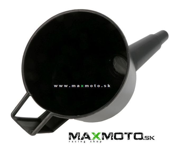 Plastový skosený lievik, so sitkom vo vnútri, vhodný na nalievanie benzínu, oleja a iných látok.