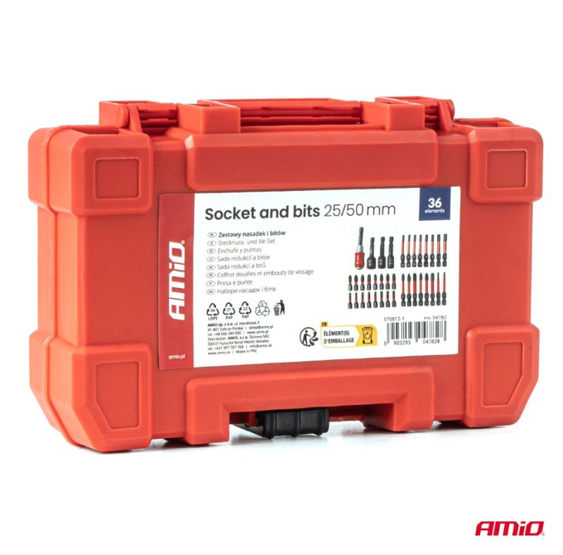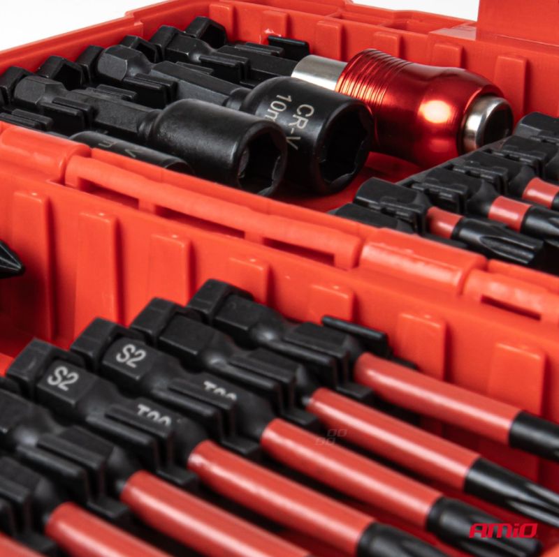 Komplexná súprava nástrčných hlavíc a bitov v praktickom kufríku od výrobcu AMIO určená na montážne, servisné a dielenské práce.