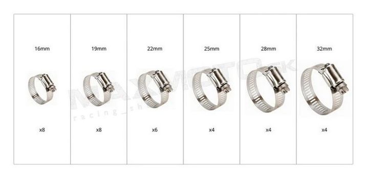 Sada 34 kusov svoriek 16, 19, 22, 25, 28, 32mm sa vám bude hodiť napríklad pri poškodení hadíc práčok, umývačiek riadu a ako montážny prvok do rôznych typov klimatizácií.