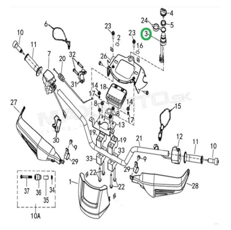 Spínač zapaľovania vhodný pre štvorkolky LINHAI 300, 400, 500, LH40DA, M550, M550L, M565LT. Číslo originálneho dielu: 27457 (na schéme č. 3)