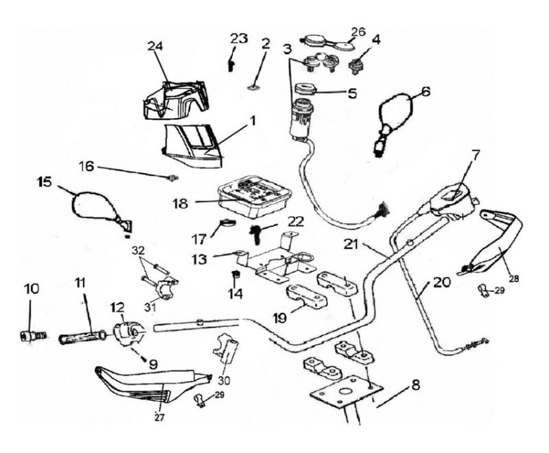 Združený ovládač LINHAI 260/ 300, ľavý (svetlá, smerovky, klaksón, štartér), 30114, 30114e