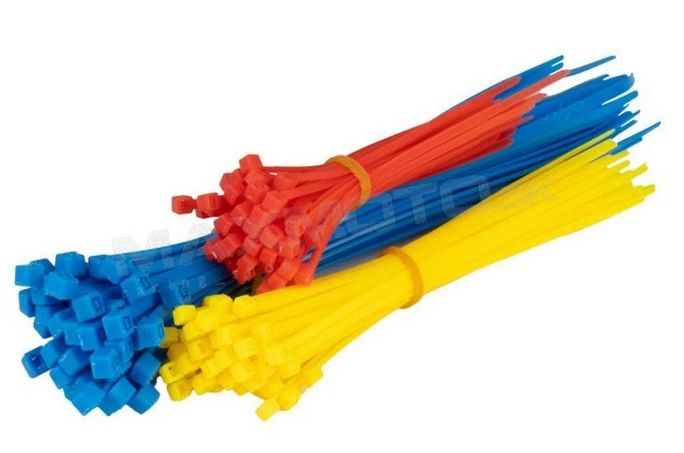 Sťahovacie pásky AMIO, farebné (modrá/ červená/ žltá), 150ks