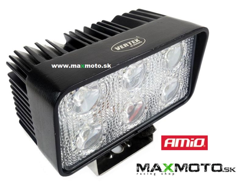 Prídavné LED pracovné svetlo s homologizáciou E9, 18W, 6000K, 2000lm a v rozmere 111 x 61 x 50 mm.