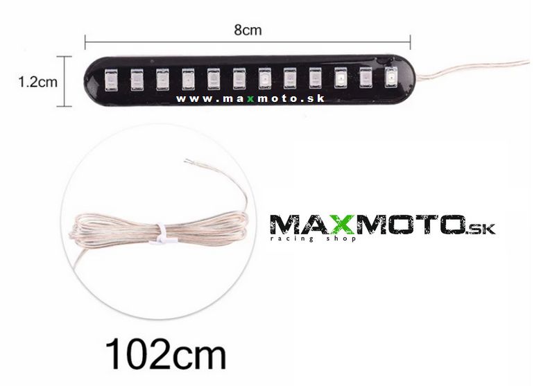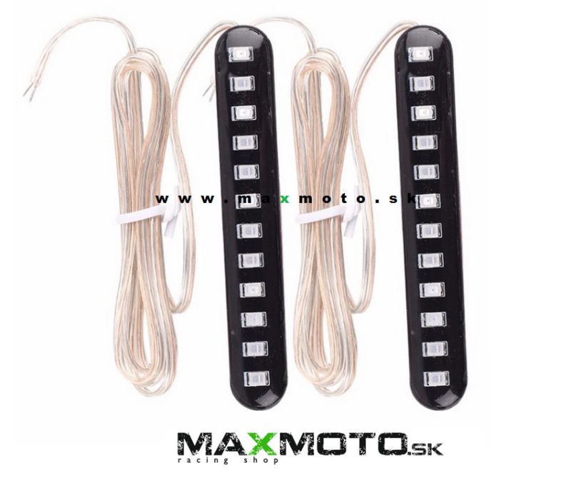 Vodotesné LED smerovky vhodné pre motorky aj štvorkolky s dynamickým efektom, 12 x LED dióda, pripevnenie 3M páskou.