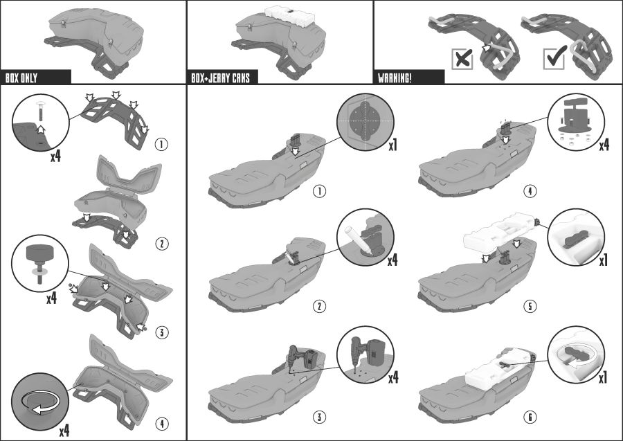 Tento box je možné namontovať len na štvorkolky TGB Blade 600/ 1000. Pri vývoji tohto boxu boli vzaté do úvahy všetky vlastnosti konštrukcie tejto štvorkolky, aby box dokonale sedel a dizajnovo ladil. Inštalácia trvá menej ako 30 sekúnd, čomu napomáhajú konektory, ktoré sa priamo pripoja k existujúcim otvorom v boxe pričom nie je potreba odstrániť operadlo ani rúčku.