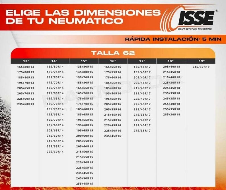 - veľkosť 62 je vhodná pre širokú škálu pneumatík (viac info vo fotogalérii)