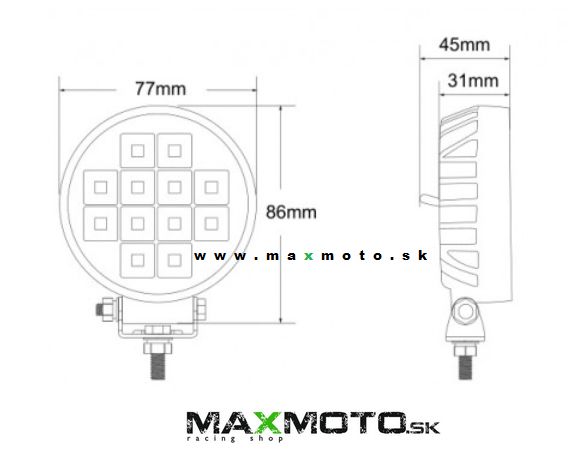 Okrúhle LED pracovné svetlo 12xLED, svetelný tok 1800lm. Má širokú škálu využitia pre OFFROAD, ATV, UTV, nákladné vozidlá, bagre, pracovné stroje a pod.