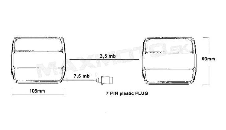 Sada zadných LED svetiel (2 x 14 LED) s upevnením na magnet. 7-pinový pripojovací kábel s dĺžkou 7,5 m.