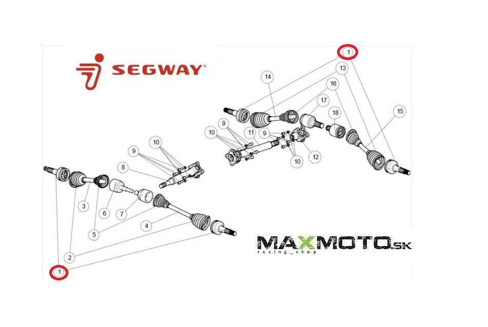 Homokinetický kĺb SEGWAY Snarler AT6, vonkajší, predný/ zadný, A02P13001001