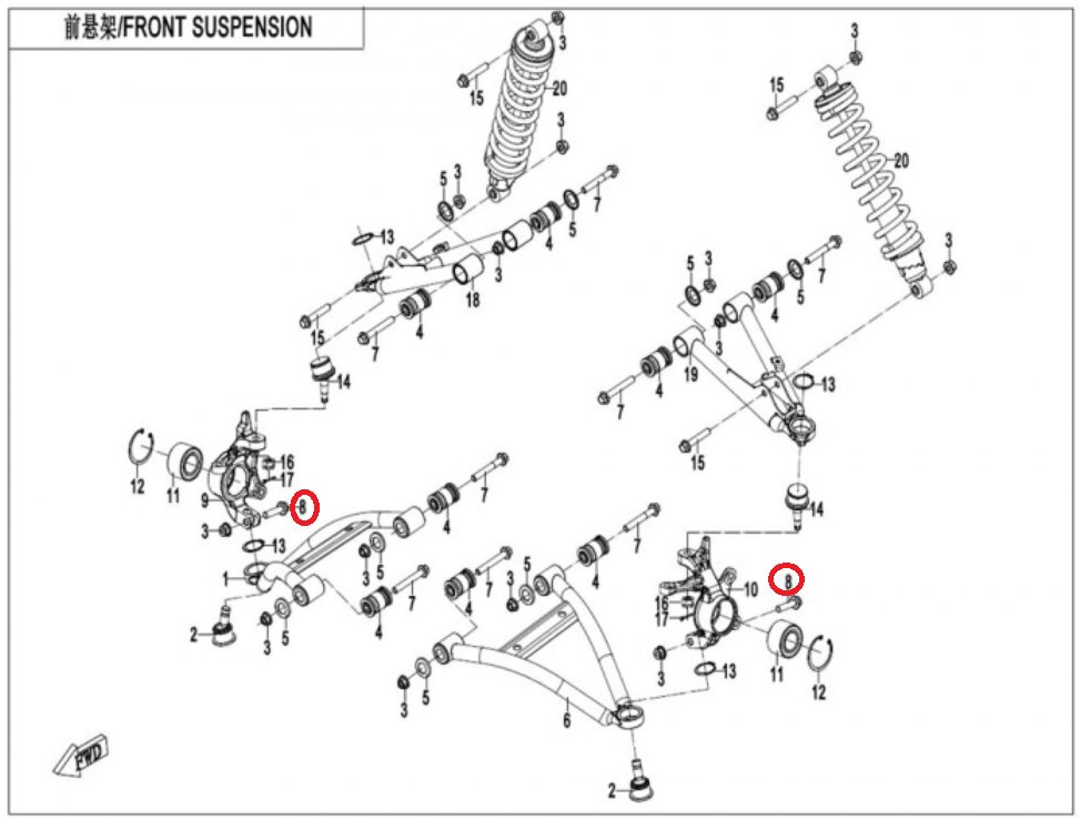 Skrutka ramena CF MOTO Gladiator X450/ X520/ X850/ X1000, Z950/ Z1000, UTV1000, 30006-102040810