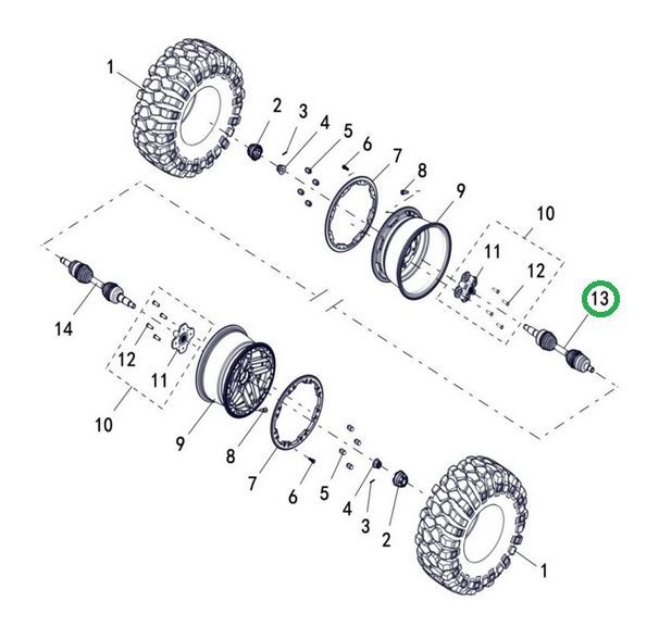 Zadná pravá poloos určená pre štvorkolky LINHAI Landforce 550L a 650L.
