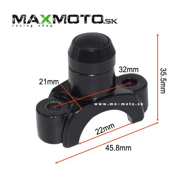 Univerzálny hliníkový spínač (napr. na klaksón/ štartér) na riadidlá s priemerom 22 mm. Šikovne nahradí spodný úchyt páčky alebo spätného zrkadla.