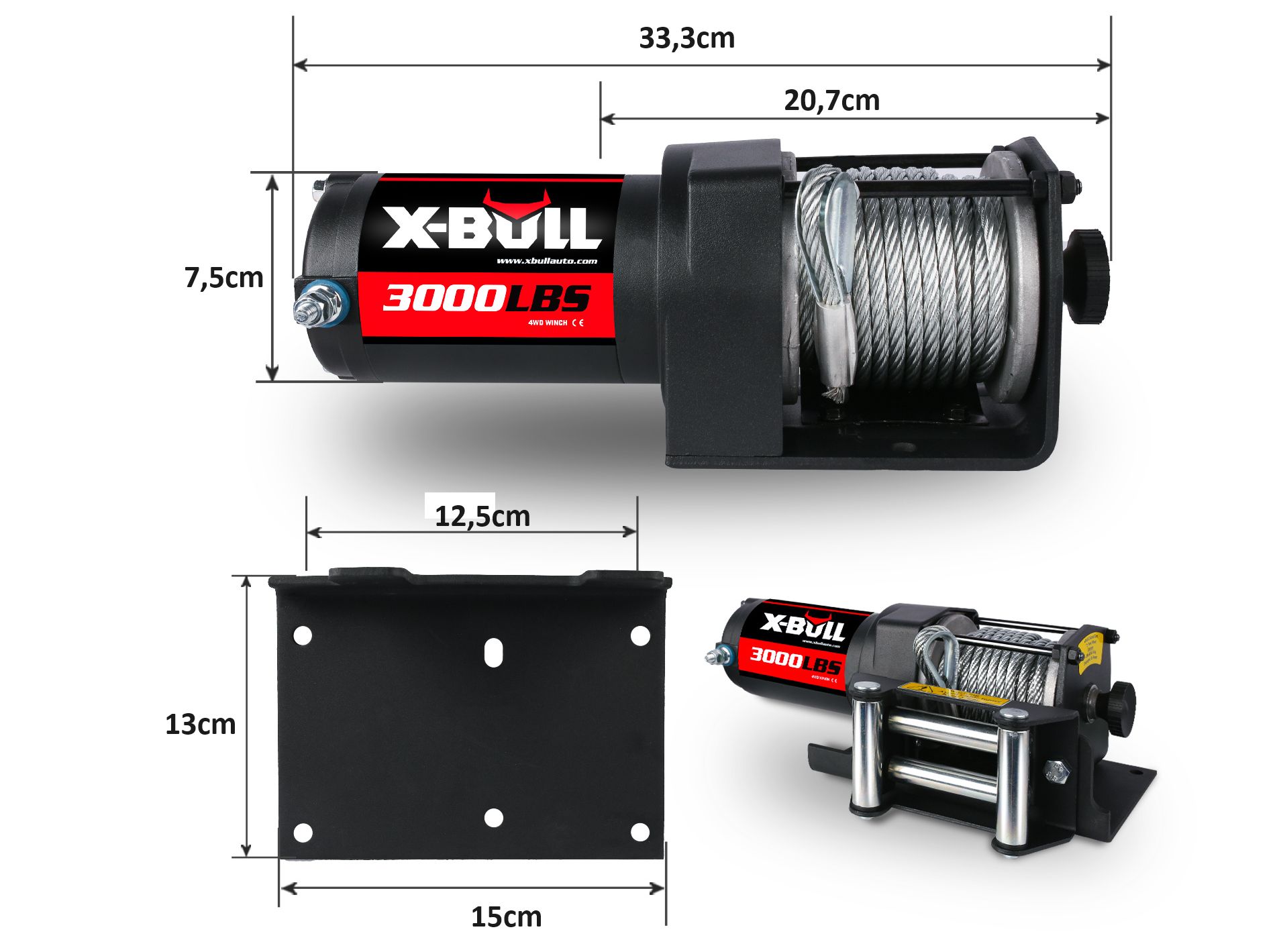 Elektrický navijak X-BULL HRW3000A oceľové lano, 12V pre štvorkolky, 1360kg, bez diaľkového ovládania