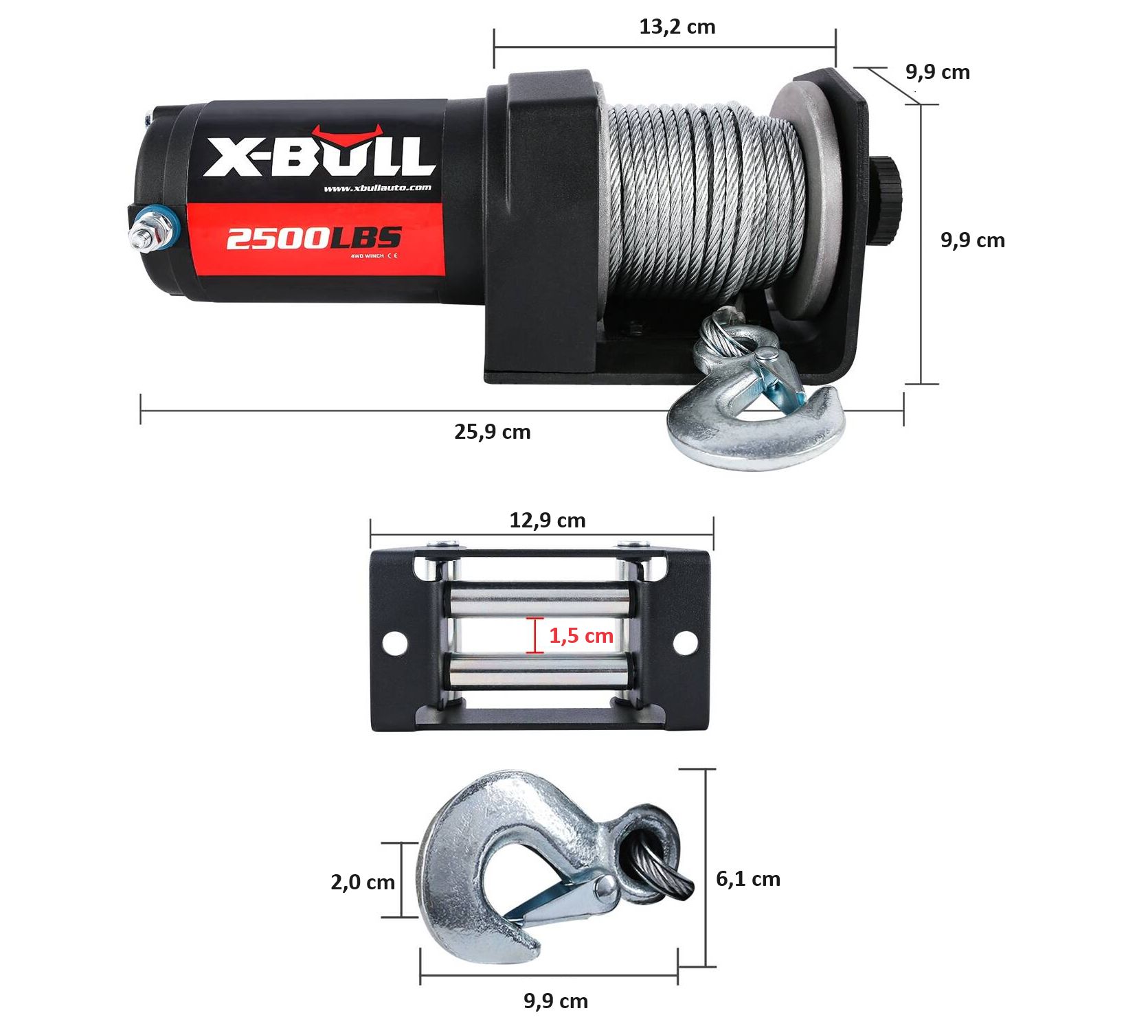 Elektrický navijak X-BULL HRW2500A oceľové lano, 12V pre štvorkolky, 1134kg