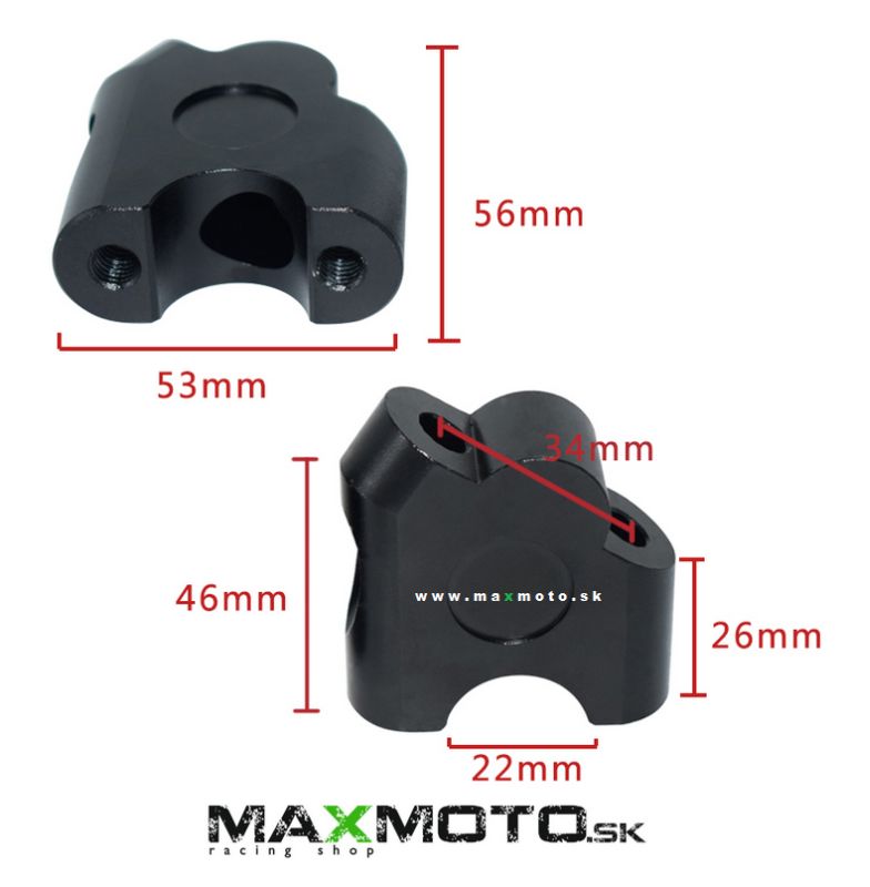 Univerzálne zvýšenie riadidiel na štvorkolku o 40 mm, ktorým sa zároveň dajú priblížiť aj posunúť riadidlá od vodiča. Určené na priemer riadidiel 22 mm.