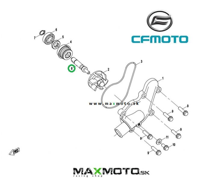 Hriadeľka vodnej pumpy CF MOTO Gladiator X450/ X520/ X5/ X6/ X600/ X625, 0180-081004-0050