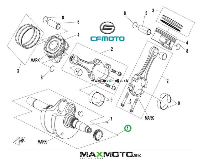 Kľukový hriadeľ určený pre štvorkolky CF MOTO Gladiator X1000 a UTV 1000 a Z1000 Sport.
