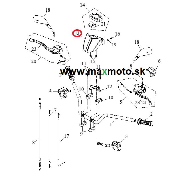 Plast riadidiel/ budíkov (viaceré, farebné prevedenia) určený pre štvorkolky Access Tomahawk 250/300/400, 72200-A03-100