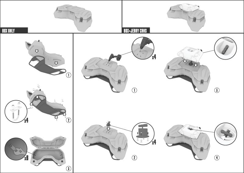 Tento box je možné namontovať na štvorkolky CAN-AM Outlander 450 L, Outlander 570 L. Pri vývoji tohto boxu boli vzaté do úvahy všetky vlastnosti konštrukcie tejto štvorkolky, aby box dokonale sedel a dizajnovo ladil.