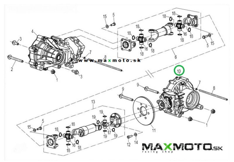 Zadný diferenciál vhodný pre štvorkolky CF MOTO Gladiator RX 510/ 530 a X6/ X8/ UTV530/ 630.
