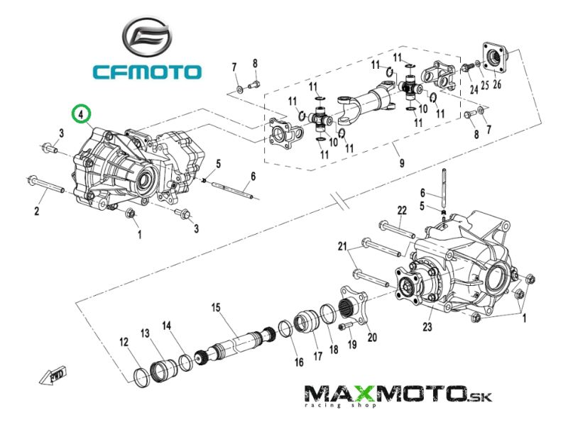 Predný diferenciál určený pre štvorkolky CF MOTO Gladiator X550, X600, X8. Číslo originálneho dielu: 0180-310000-1000, 0180-310000-10001, Q800-310000-00001