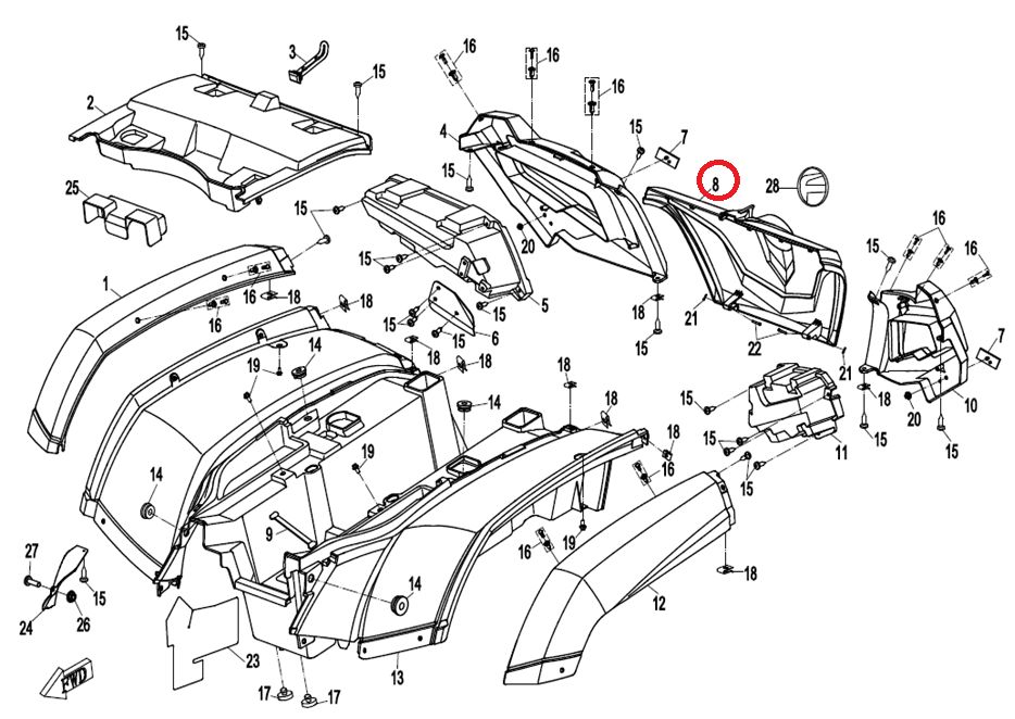 Dvierka zadného úložného boxu CF MOTO Gladiator X550/ X600/ X625, 15-20, 9CR6-043024