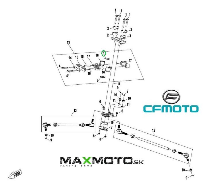 Gumička horného uloženia riadenia CF MOTO Gladiator X450/ X520/ X550/ X600/ X850/ X1000/ X8 V-twin EFI, 30502-032800N