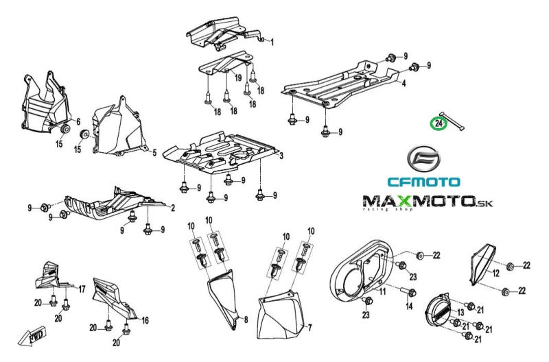 Gumový držiak batérie určený pre štvorkolky CF MOTO Gladiator X450 a X520. Číslo originálneho dielu: 9GQ0-040910 (na schéme č. 24)