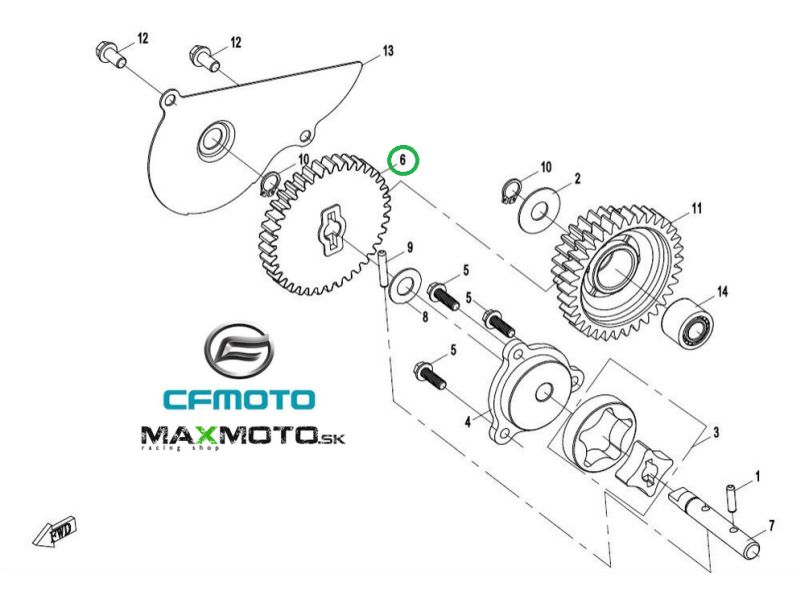 Ozubenie vodnej pumpy CF MOTO Gladiator X450/ X520/ X550/ X600/ X625, 0GR0-070004