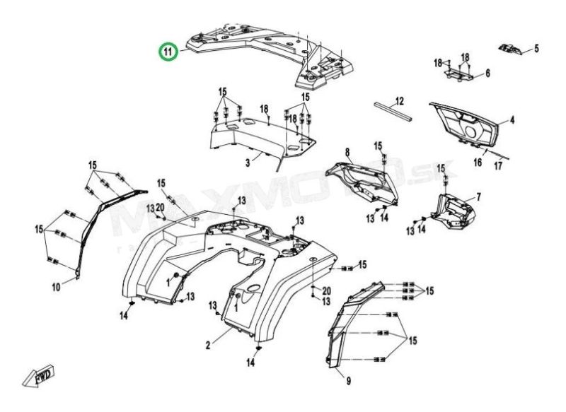 Zadný plastový nosič určený pre štvorkolky CF MOTO Gladiator X850 a X1000. Číslo originálneho dielu: 9AWA-141004