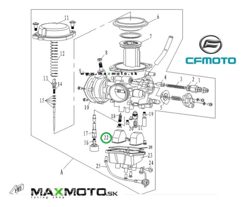 Plavák karburátora CF MOTO Gladiator X5/ RX 510/ UTV 530, 0180-100020