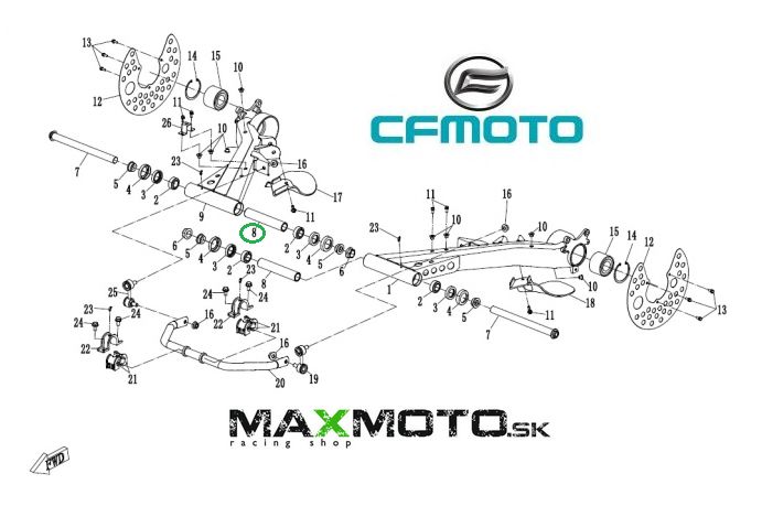 Kovové puzdro ramena určené pre štvorkolky CF MOTO Gladiator X1000.