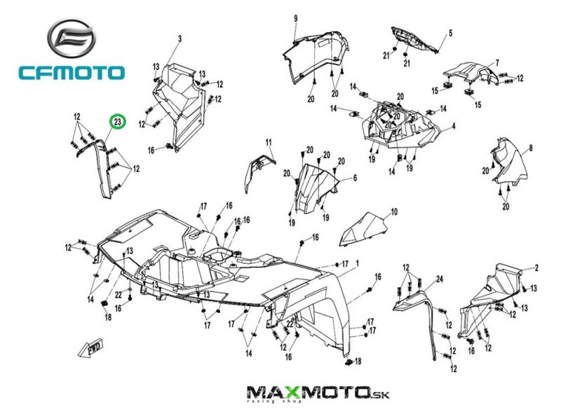 Rozširovací plast blatníka CF MOTO Gladiator X850/ X1000, predný pravý, 9AWA-260012