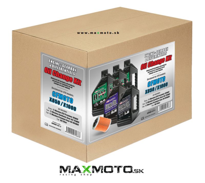 Sada na výmenu motorového oleja, prevodového oleja a oleja do diferenciálu vrátane olejového filtra pre štvorkolky CF MOTO X850 a X1000.