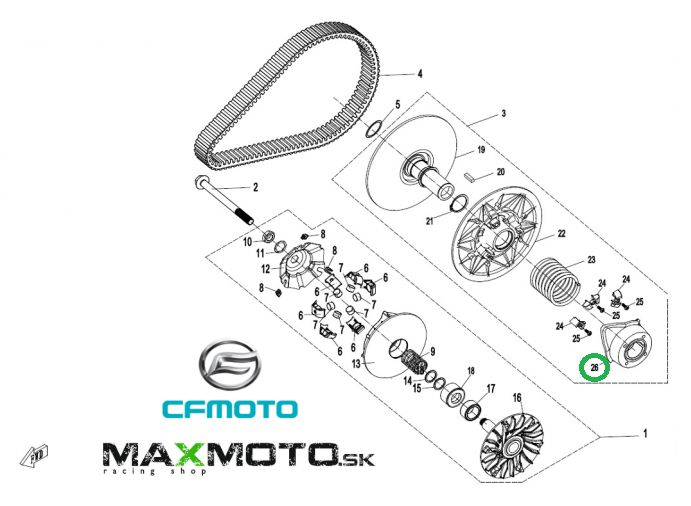 Trojzub variátora CF MOTO Gladiator X450/ X520/ X600/ X625/ X850/ X1000, UTV, 0GR0-052002