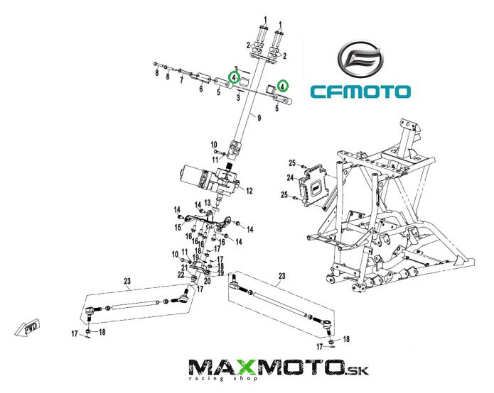 Uloženie tyče riadenia CF MOTO Gladiator X8/ X450/ X520/ X550/ X600/ X850/ X1000, 7020-100602