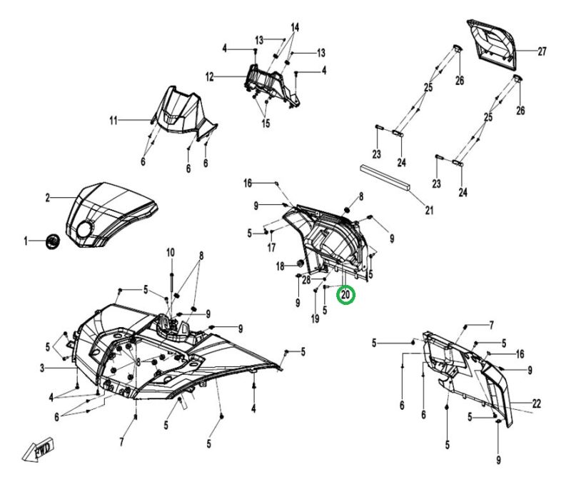 Úložný priestor CF MOTO Gladiator X625 20-25, predný, 9DS#-041035-6001