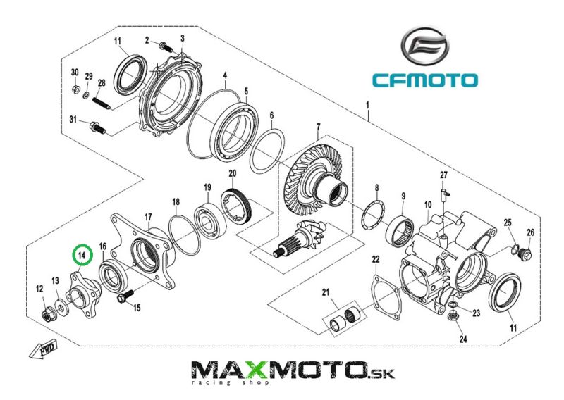 Unášač zadného kardanu určený pre štvorkolky CF MOTO Gladiator X450, X520, X550, X600, X8. Číslo originálneho dielu: Q520-331006