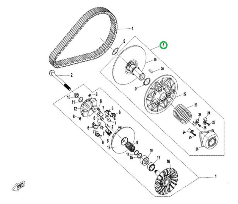 Variátor, sekundárna remenica CF MOTO Gladiator X450 G2/ X520 G2/ X600/ X625, 0GR0-052000