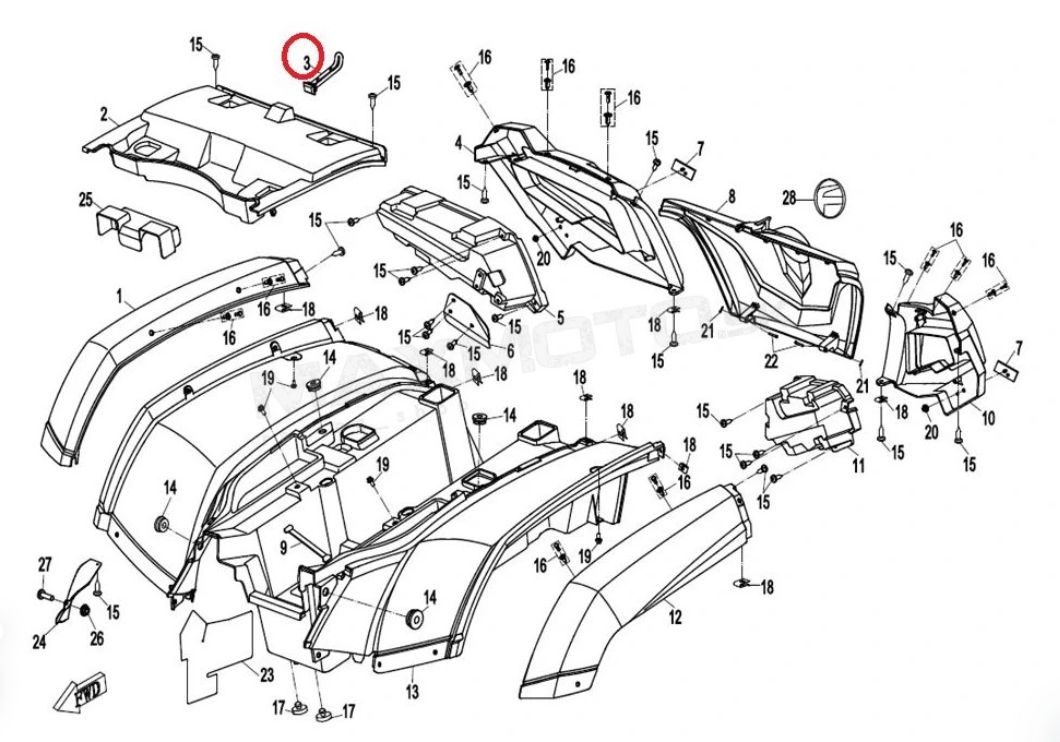 Zaistenie zadného boxu CF MOTO Gladiator X550/ X600/ X625, 18-20, 9CR6-043025-00001