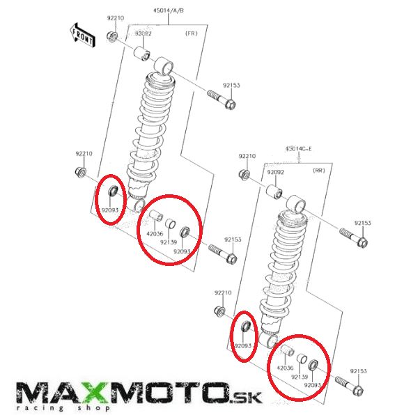 Opravná sada dolného predného/ zadného uloženia tlmiča určená pre štvorkolky KAWASAKI Brute Force 650/ 750.