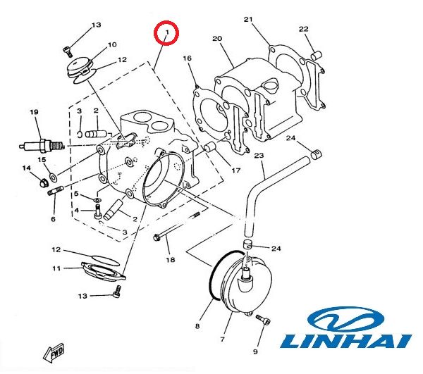 Hlava valca vhodná pre štvorkolky LINHAI 260CC. Originálne číslo: 22401A