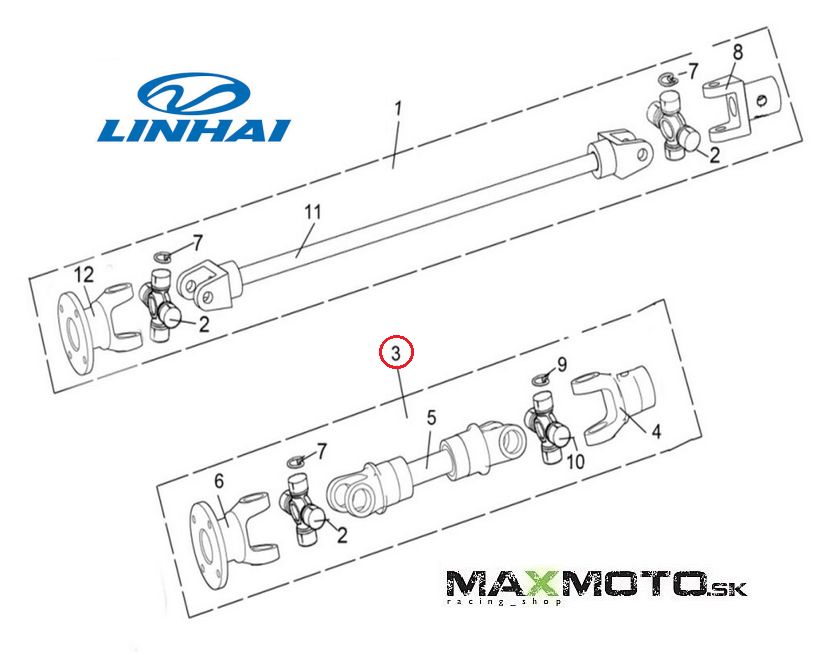 Zadný kardan určený pre štvorkolky LINHAI M550L E4.
