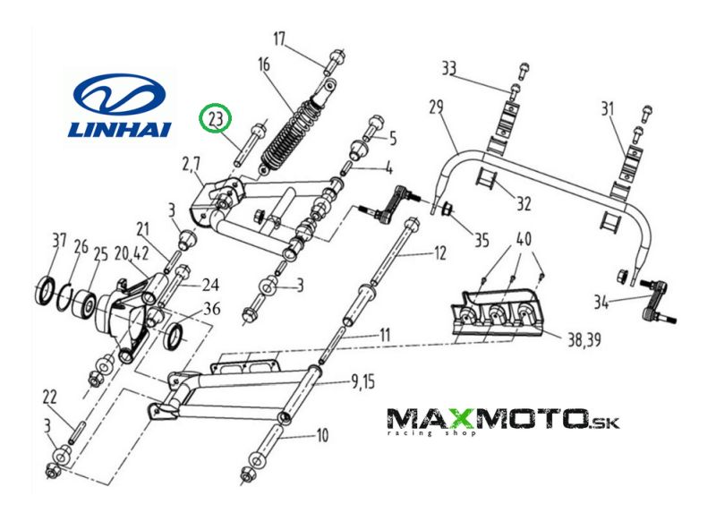 Skrutka horného uloženia náboja určená pre štvorkolky LINHAI 400, 500, M550, M550L a ďalšie. Číslo originálneho dielu: 70694