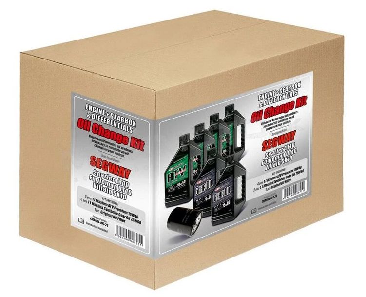 Súprava na kompletnú výmenu olejov pre SEGWAY Snarler AT10, Fugleman UT10 & Villain SX10, vrátane motorového / prevodového / hypoidného oleja, filtra a návodu s postupom.