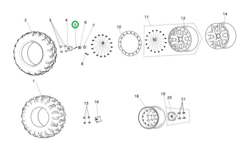 Zaistenie matice kolesa (5 x 50) určené pre štvorkolky SEGWAY AT5, AT10, Snarler AT6, UTV Fugleman UT6, Villain SX20T. Číslo originálneho dielu: GBT000091007