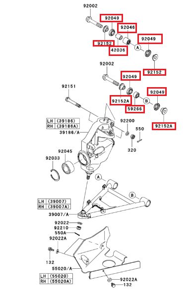 Uloženie dolného A ramena KAWASAKI BRUTE FORCE 650, 50-1031