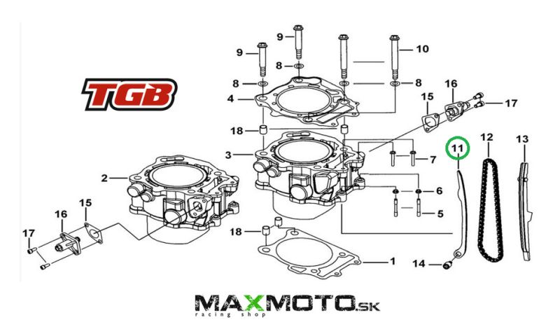Vodítko rozvodovej reťaze určené pre štvorkolky TGB Blade 1000. Číslo originálneho dielu: 910080