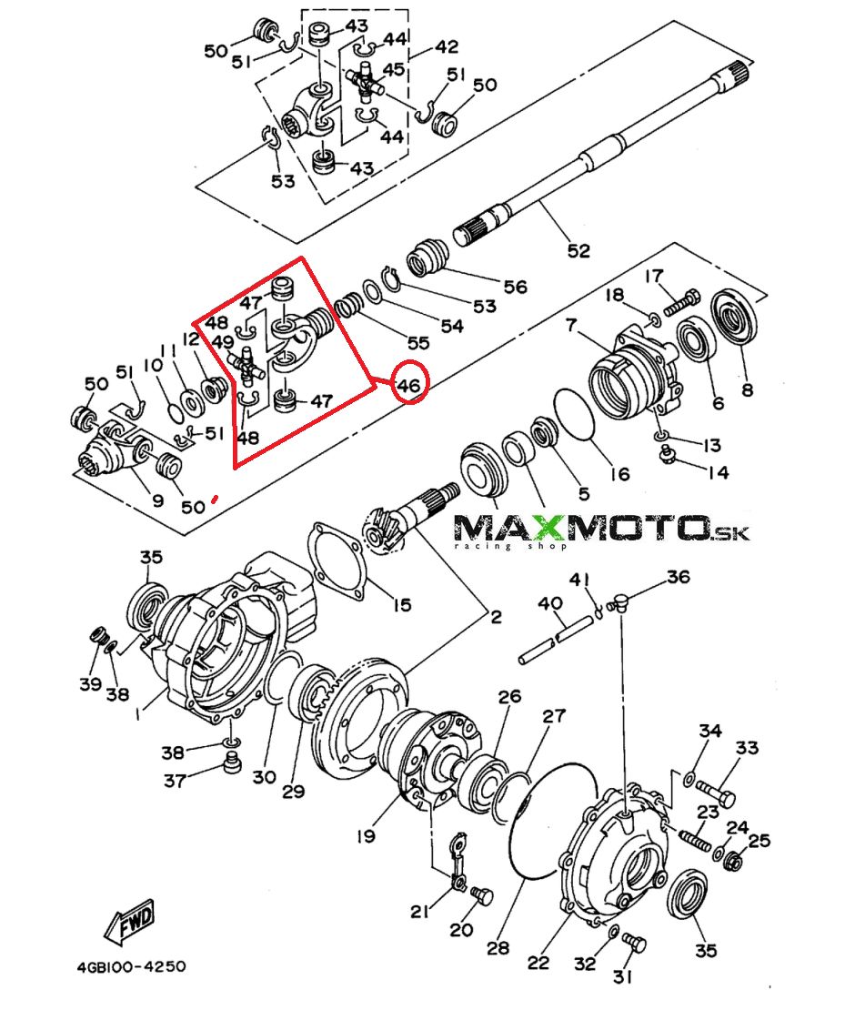Unášač predného kardanového kríža YAMAHA Grizzly 350, Wolverine 350/ 450, Kodiak 400/ 450, 4GB-46108-10-00